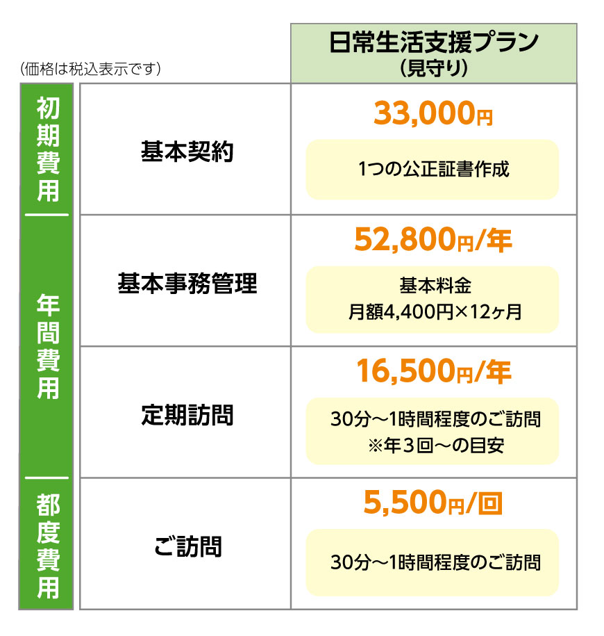 ※基本事務管理は必須となります。財産管理、不動産管理はご希望によりお手伝いいたします。 ※生活支援は介護など専門的なサポートはお受けできません。