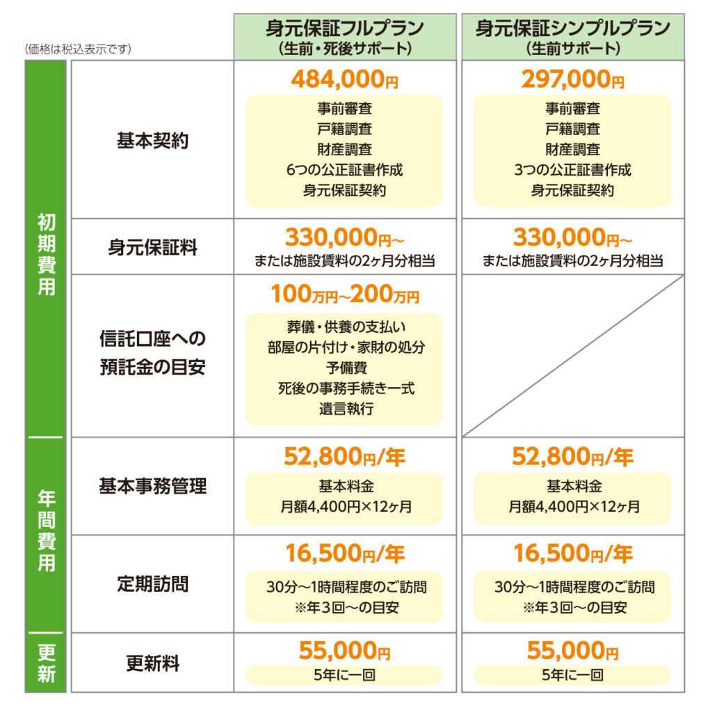 ※身元保証料の対象となる施設賃料の最低金額は33万円となります。