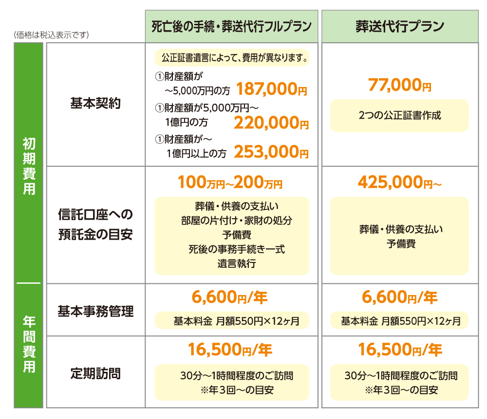 ・あんしん財産管理支援機構への登録と「もしもの時の連絡先カード」の発券および、精算時の監査料に別途1.76万円がかかります。
